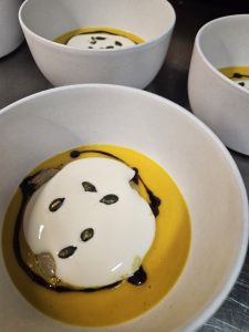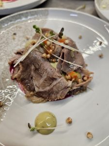 Kuhar Florjan je pripravil 5-hodni meni, vsak hod pa sta spremljali dve anonimni vini brez etikete. Gostje so se prelevili v sodnike in odločali, katero vino se je bolje ujemalo z izbrano jedjo.